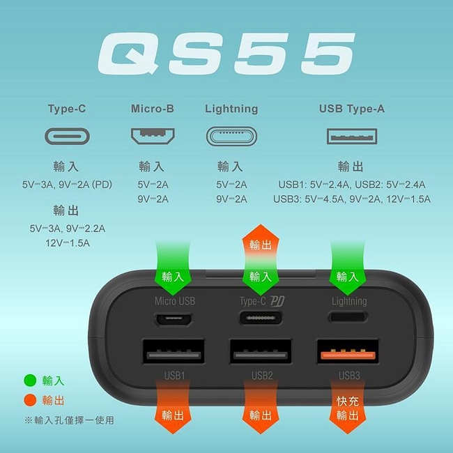 ● 輸入接口:Micro-USB, Type-C, Lightning