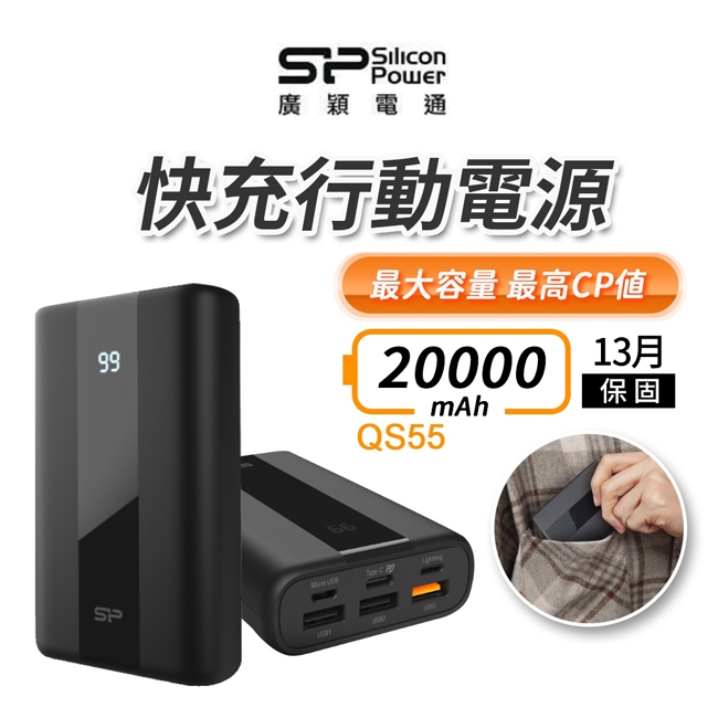 【SP廣穎】QS55 旗艦款 20000mAh 22.5W 行充 PD/QC快充行動電源