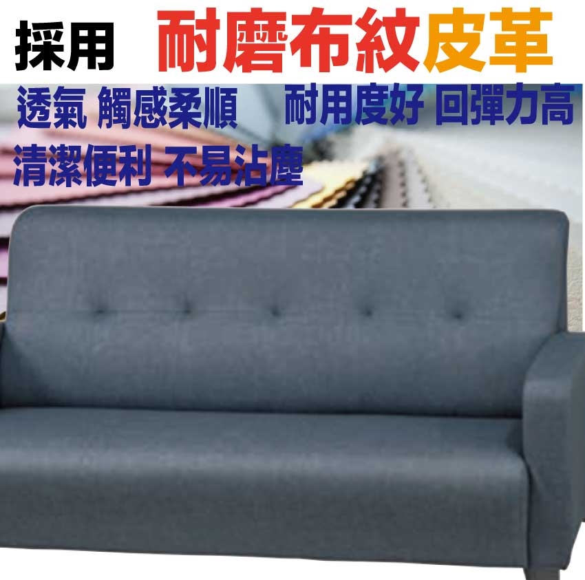 採用內部實木框架+耐磨造型腳座+耐磨布紋皮革+高回彈泡棉等安心材質製造