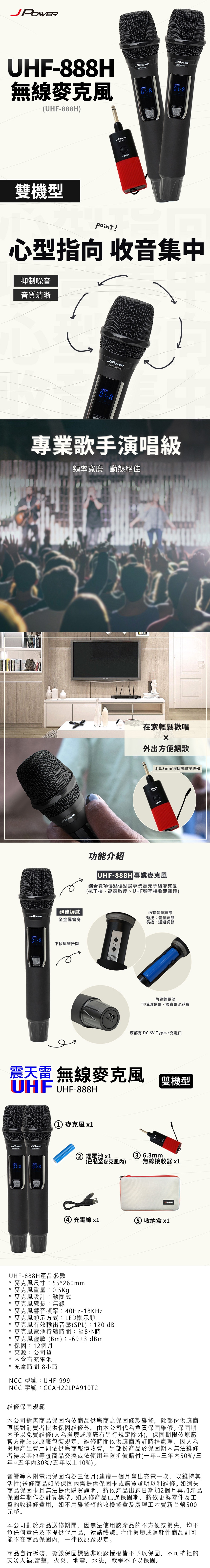 JPOWER 震天雷UHF-888行動式無線麥克風組 - 雙機型