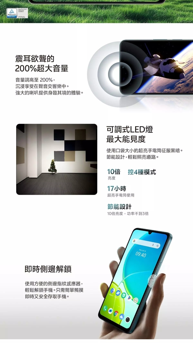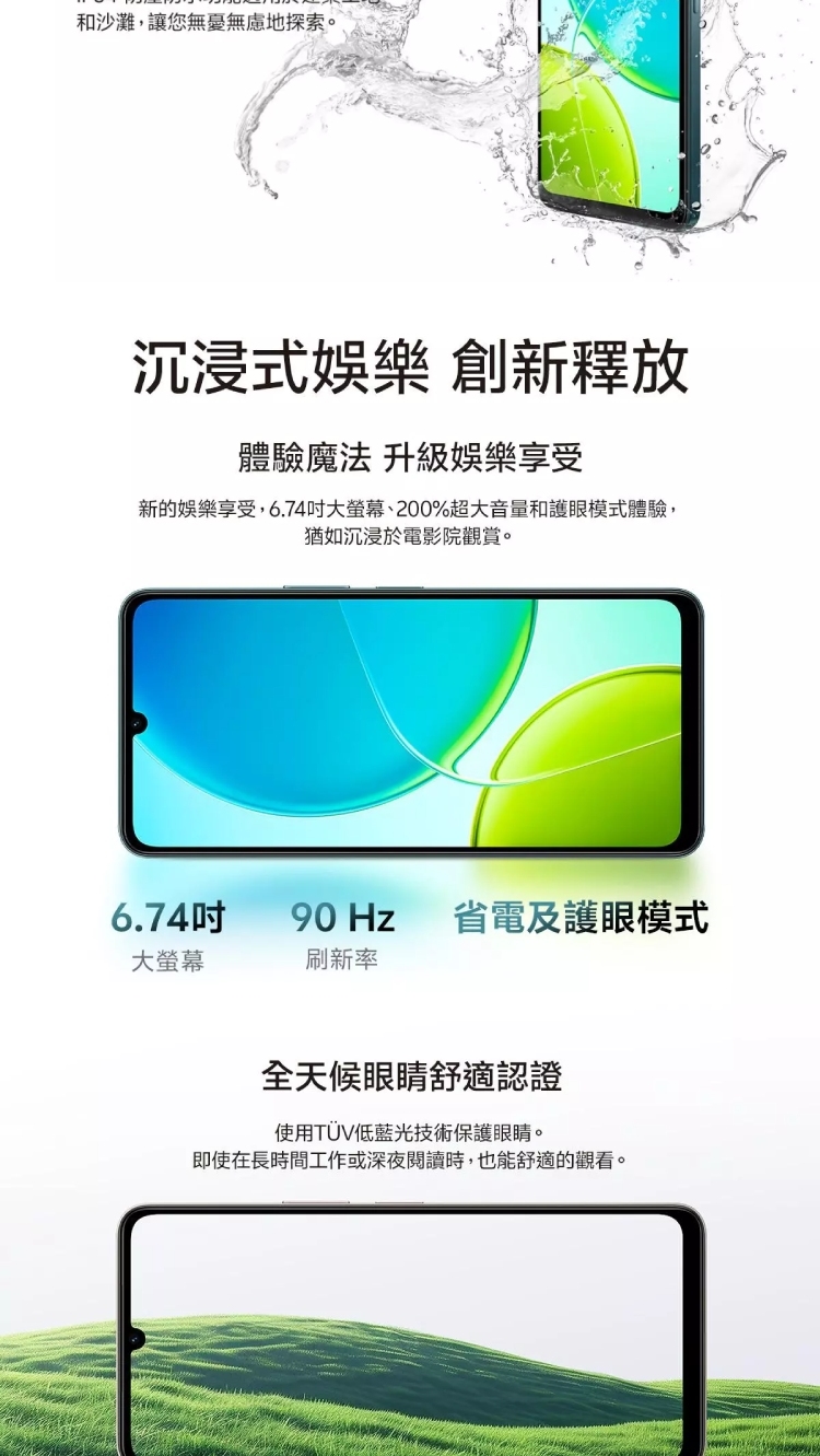 ◆ 6.74 吋大螢幕、200% 超大音量和護眼模式體驗