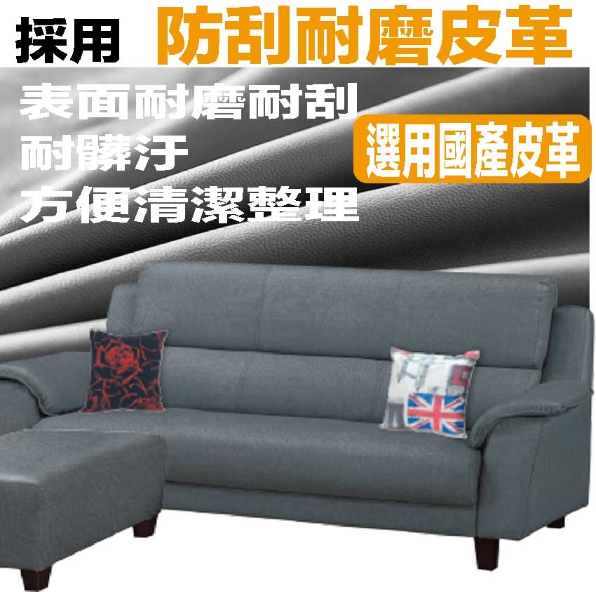 【文創集】艾默灰色耐刮皮革小L型沙發組合(三人座+椅凳組合) 灰色系+三人座+椅凳組合+現代美型外觀+安心材質製造,就是這種頂級質感的設計,能輕鬆地融入各種空間風格,採用內部實木板材框架+防潮造型腳座+耐刮耐磨皮革+高回彈力加厚泡棉等安心材質製造,品質安心有保障,現在購買專人送到府服務,免組裝+免運費,讓你省時省力省運費!