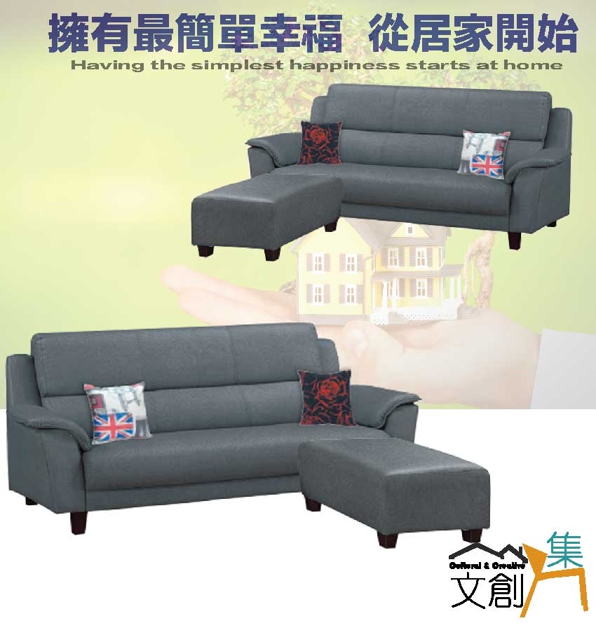 灰色系+三人座+椅凳組合+現代美型外觀+安心材質製造