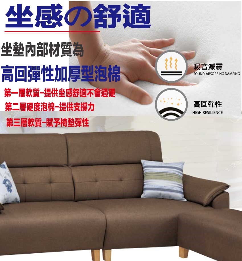 採用內部實木板材框架+防潮造型腳座+耐刮耐磨皮革+高回彈力加厚泡棉等安心材質製造