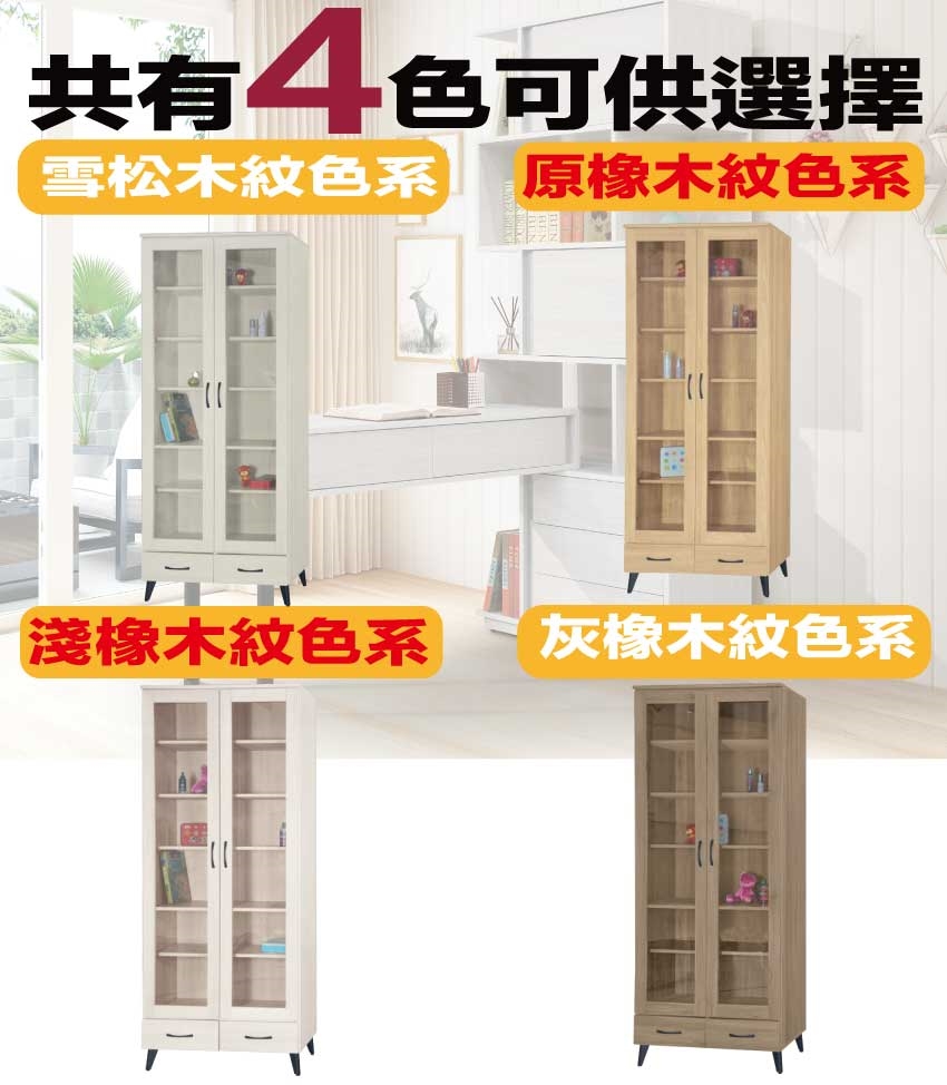 【文創集】田野2.7尺二門二抽書櫃(四色可選) 四色可選+安心材質製造,使用放心+搭配居家更便利,採用防蛀木心板+烤漆五金腳座+五金滑軌結構+防夾手緩衝門片五金等安心材質製造 ,外層採用防潮耐磨噴漆處理搭配採用開門櫃+二抽屜+內開放層格等收納空間設計,全由專人配送到家,專業安心服務,替你省下更多時間!