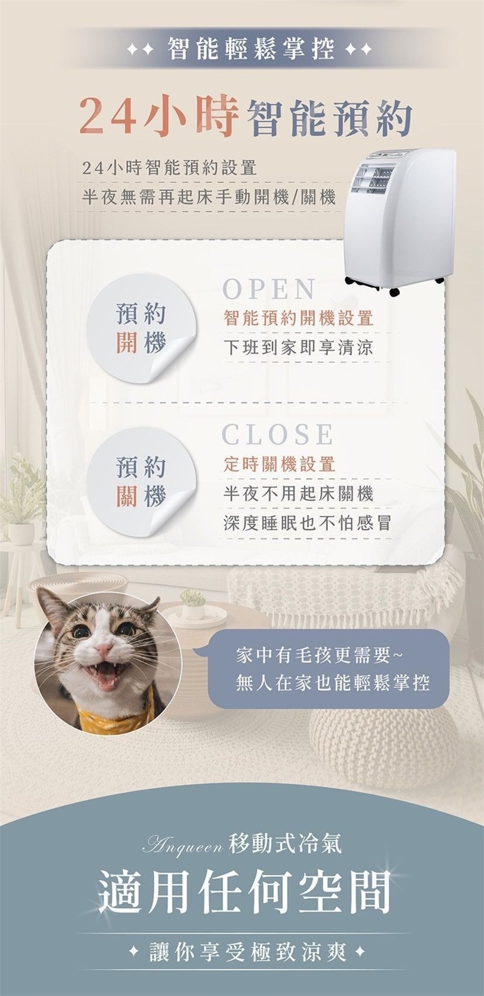 使用安晴移動式空調(anqueen portable air conditioner) 時,請注意以下事項:確保有對外排放熱氣的空間,並使用隨附的排熱管,避免使用延長線或轉接頭,以及避免同時使用其他高功率電器。 此外,應注意集水盤是否滿水,並在濕度高或需要除濕時,使用排水管進行排水。