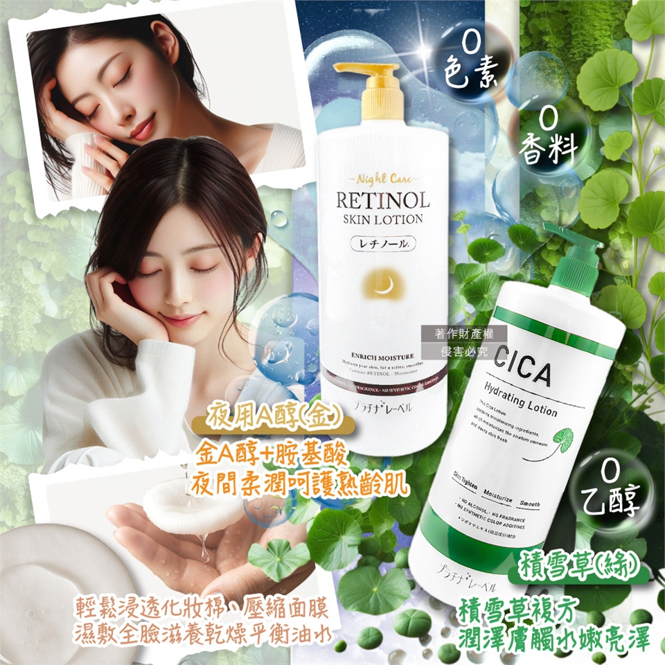 (1)夜用A醇(金):Water、glycerin、BG、Saccharomyces/Rice Fermentation Filtrate、Sodium PCA、Arginine、Aspartic Acid、Soybean Germ Extract、Propanediol、PCA、Glycine、Alanine、Royal Jelly Extract、Serine、Valine、Isoleucine、Threonine、Proline、Histidine、Phenylalanine、Platinum、Rosa Damascena Flower Water、Hydrolyzed Elastin、Hydrolyzed Collagen、Sodium Hyaluronate、Retinol、Ceramide NP、Ceramide AP、Phytosphingosine、Ceramide EOP、Styrene/VP Copolymer、Sodium Lactate、Sodium Bicarbonate、Cholesterol、Xanthan Gum、Cellulose Gum、Carbomer、Sodium Lauroyl Lactylate、Polysorbate 20、Sodium Citrate、Citric Acid、Magnesium Ascorbyl Phosphate、Cyclodextrin、Phenoxyethanol、Methylparaben、Gold、Silver。