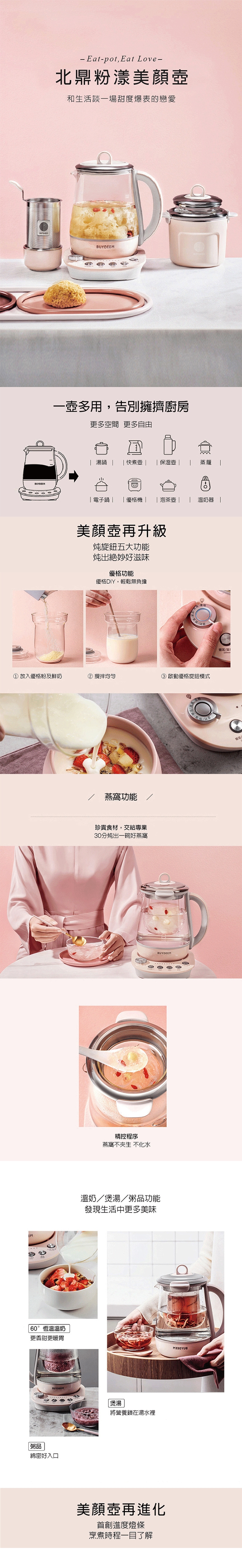 北鼎粉漾美顏壺,推出全新優雅茱萸粉新色系,提升下廚幸福感,分享甜蜜”煮”意,喝出化妝也達不到的亮眼容顏!