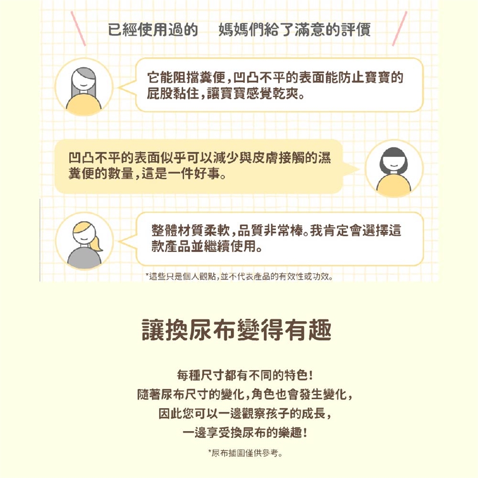 ※以上尺寸僅供參考,須根據寶寶實際體型和生長速度考量,挑選適合的尺寸,才能給寶寶更舒適的體驗。