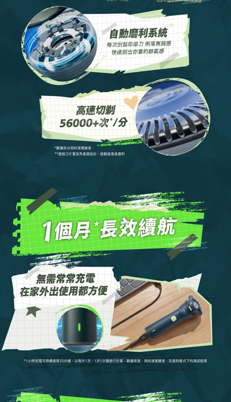 ◆ 高速切剃:每分鐘56,000+次*數據來自飛利浦實驗室