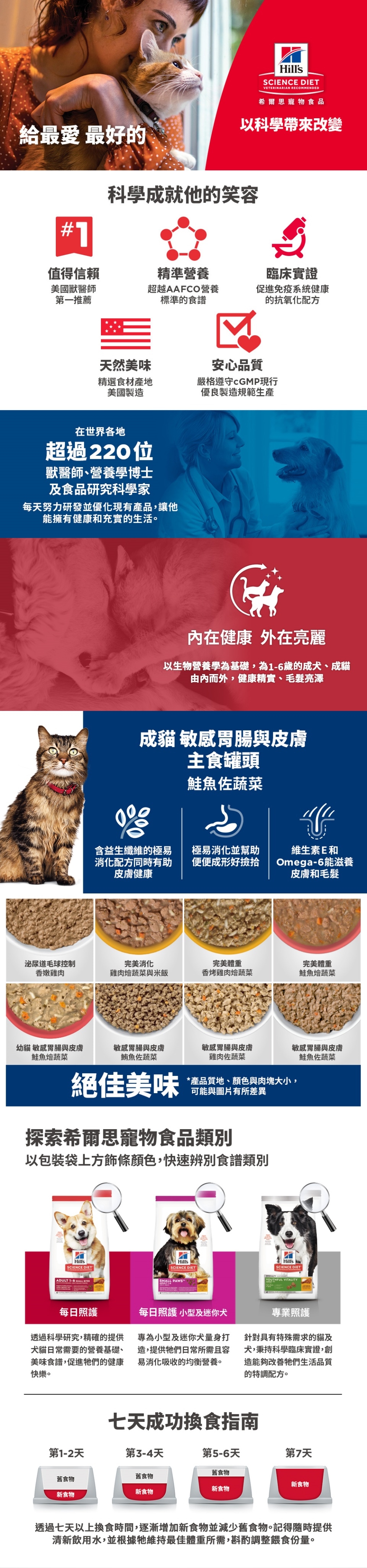 請見產品外包裝以取得詳細的餵食指南,視寵物維持最佳體重所需,斟酌調整餵食量,若不確定,可向獸醫師諮詢。若首次餵食本產品,請以七天以上時間轉換餵食,逐漸增加新食物並減少舊食物。請隨時提供清新飲用水!寵物的營養需求會隨著年齡增長而改變,請於寵物健檢時諮詢醫師相關資訊。