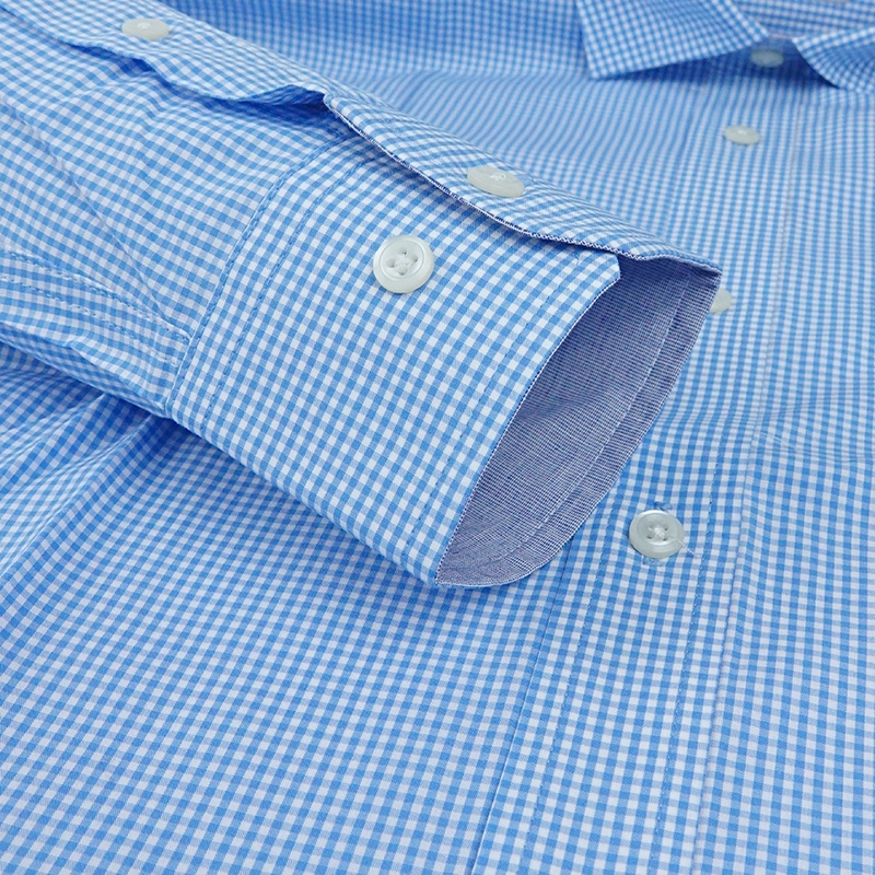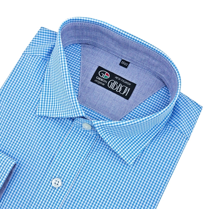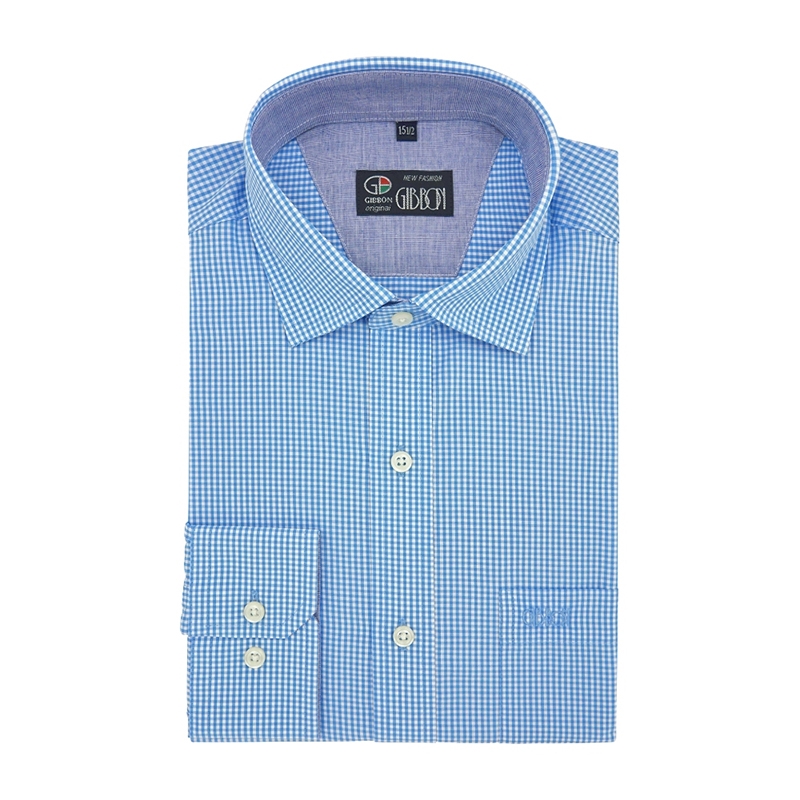 GIBBON 經典細格紋 純棉舒適 休閒長袖襯衫 藍白格