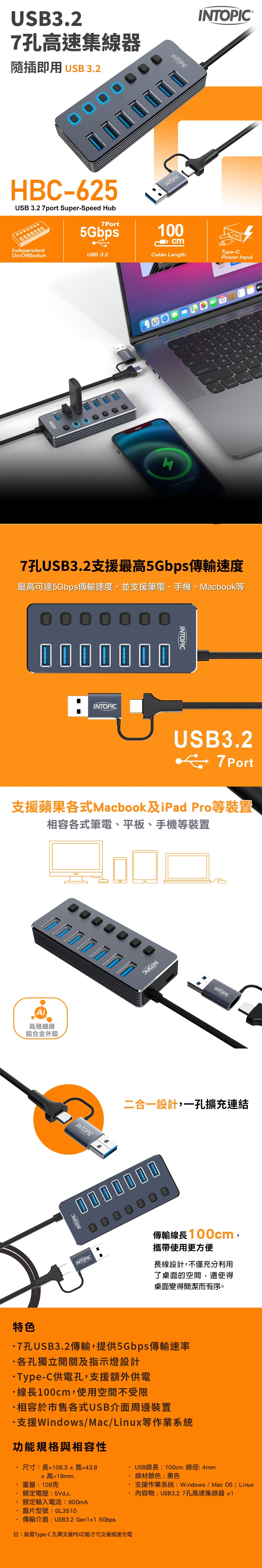 》7孔USB3.2傳輸,提供5Gbps傳輸速率