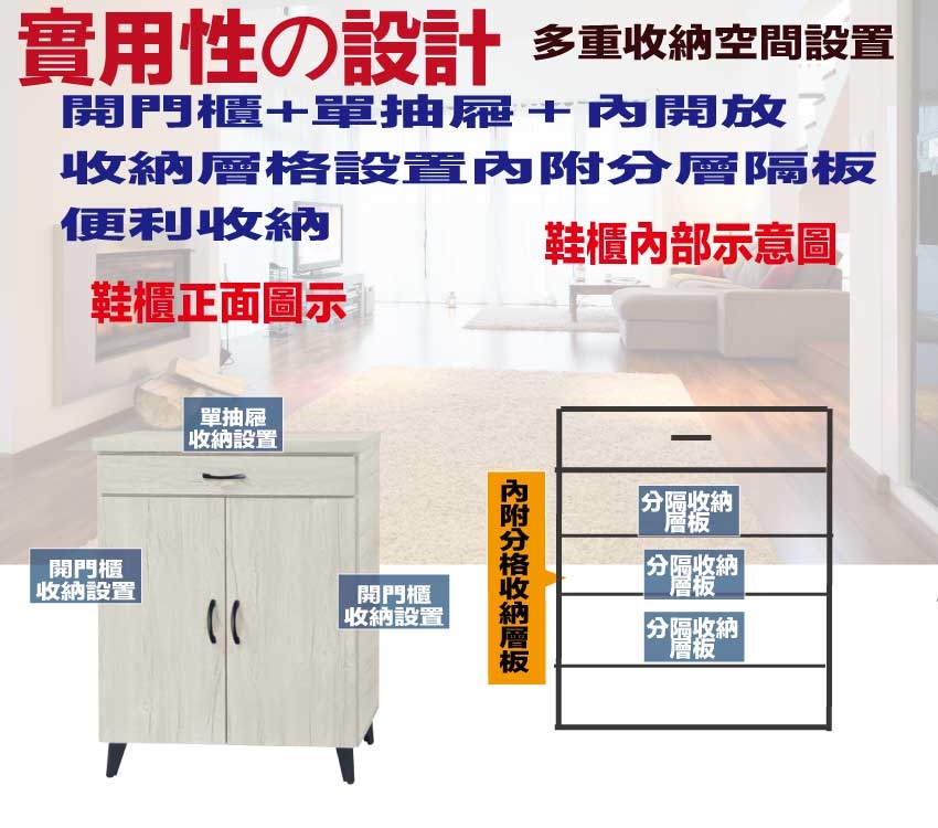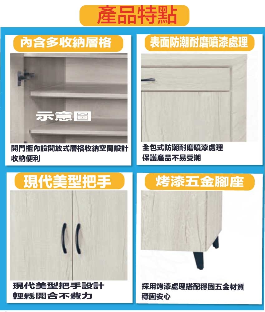 【文創集】艾可曼2.7尺二門單抽低鞋櫃 白雪松木紋色系+現代簡約風格+安心材質製造,使用放心+搭配居家更便利,整體採用防蛀木心板+烤漆五金腳座+五金滑軌結構+防夾手緩衝五金等材質搭配外層採用優莉坦耐磨全包式噴漆處理 ,採用開門櫃+單抽屜+內開放層格等收納空間設計,全由專人配送到家,專業安心服務,替你省下更多時間!
