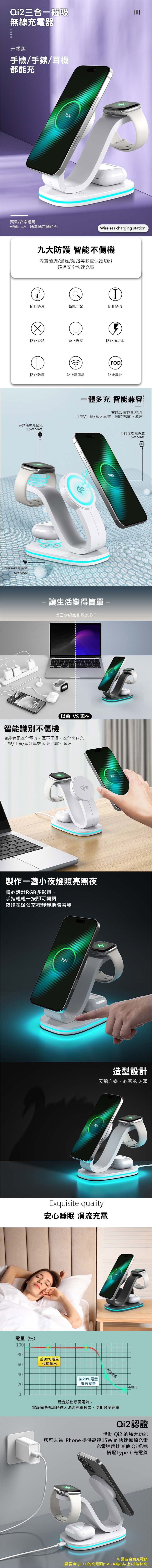 Qi2三合一無線充電器 手機/耳機/手錶 同時快速充電