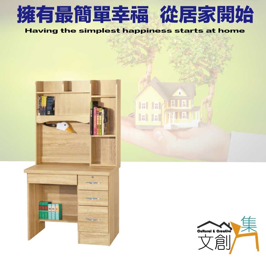 【文創集】金雀3尺四抽書桌組合(附可調護眼燈) 梧桐木紋色系+安心材質製造,使用放心+搭配居家更便利,採用防蛀木心板+防潮耐磨底座+五金滑軌結構等安心材質製造 ,外層採用防潮耐磨噴漆處理搭配採用可調LED燈架+四抽屜+開放層格等收納空間設計,全由專人配送到家,專業安心服務,替你省下更多時間!