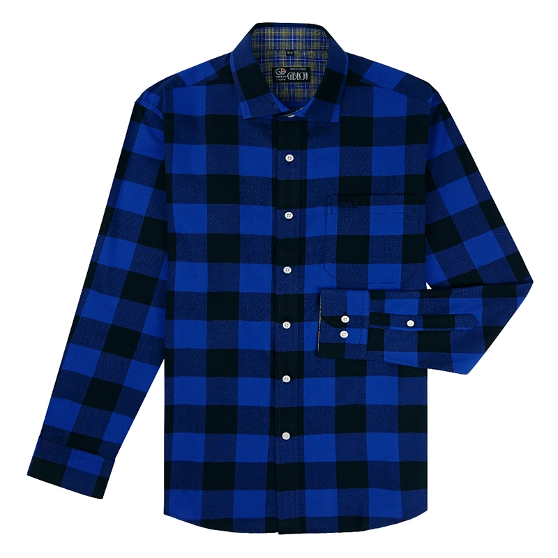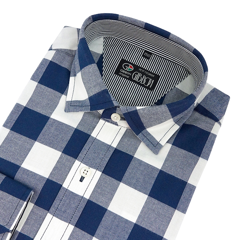 GIBBON 極簡設計窗格紋 彈性純棉 休閒長袖襯衫 藍白格 黑藍格