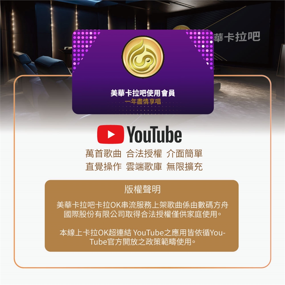 ◎搭載美華卡拉吧一年使用會員(序號卡刮除將視同正式使用不得退貨)