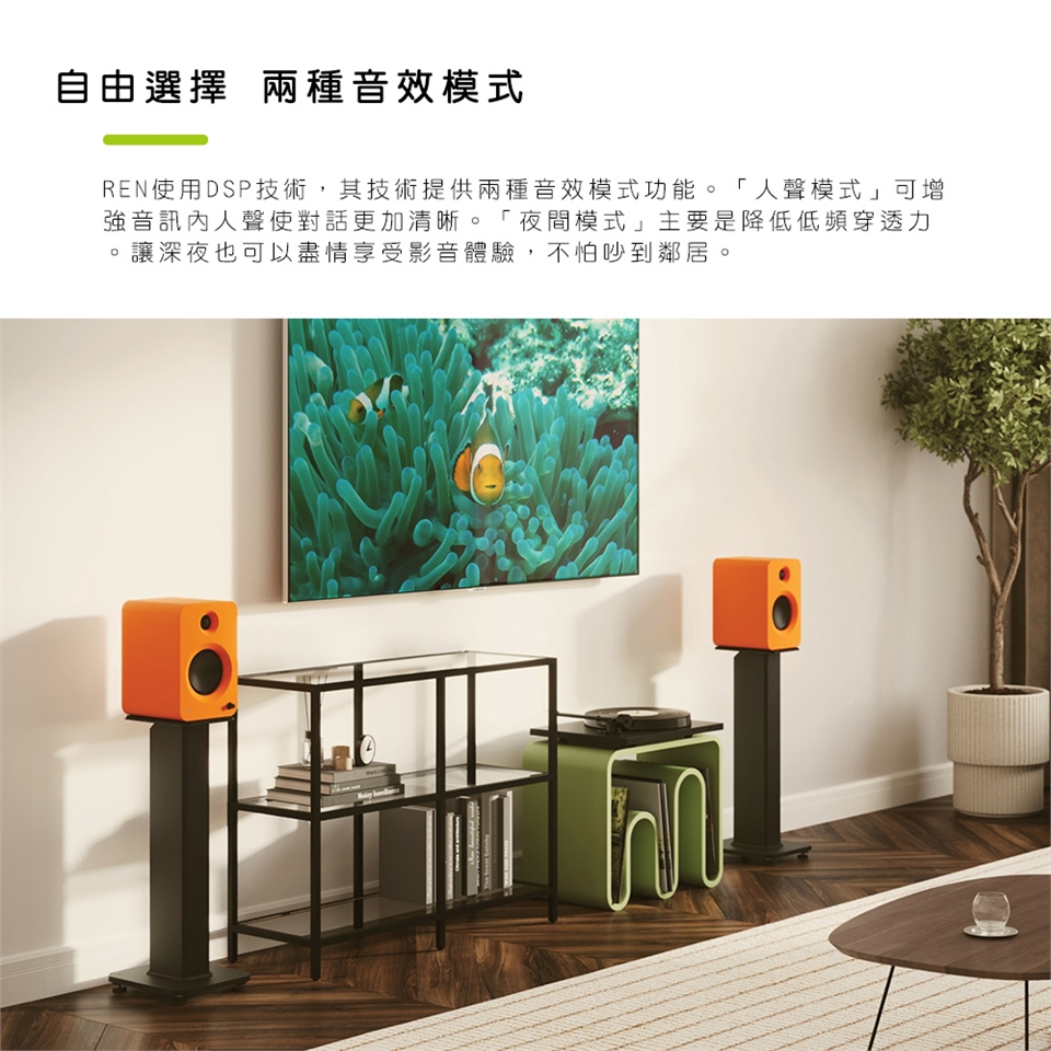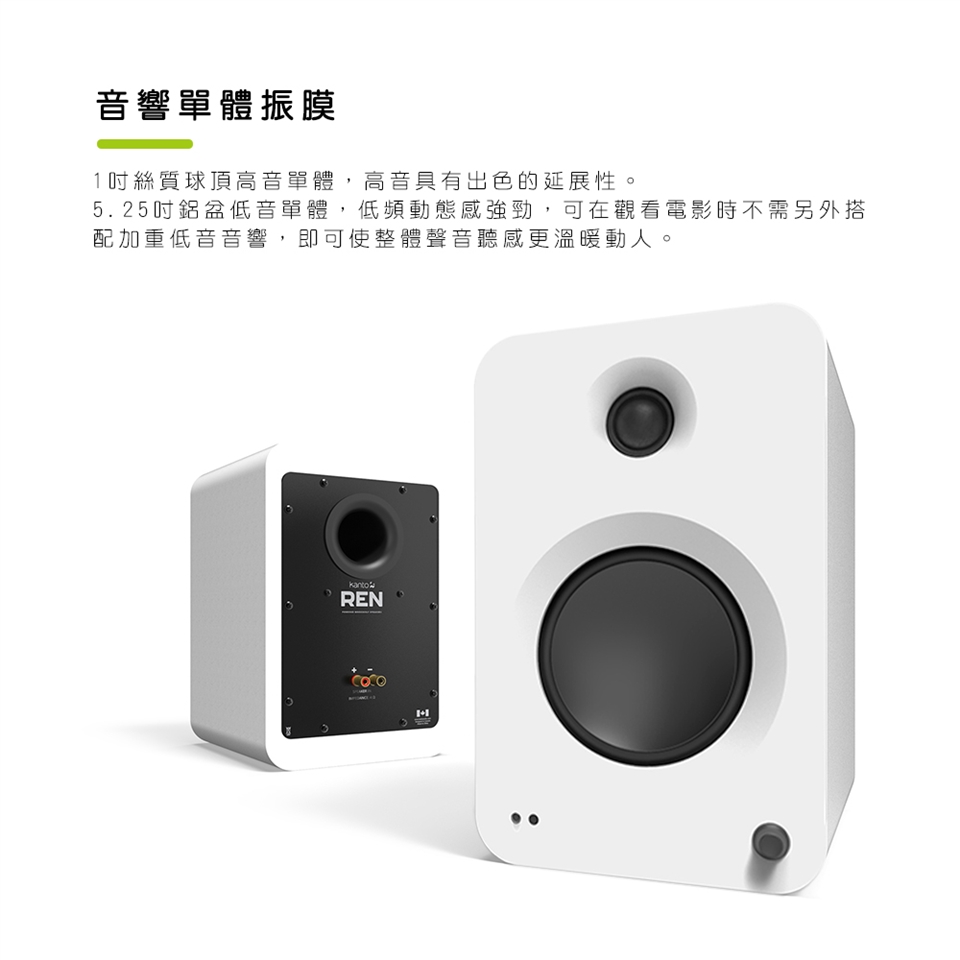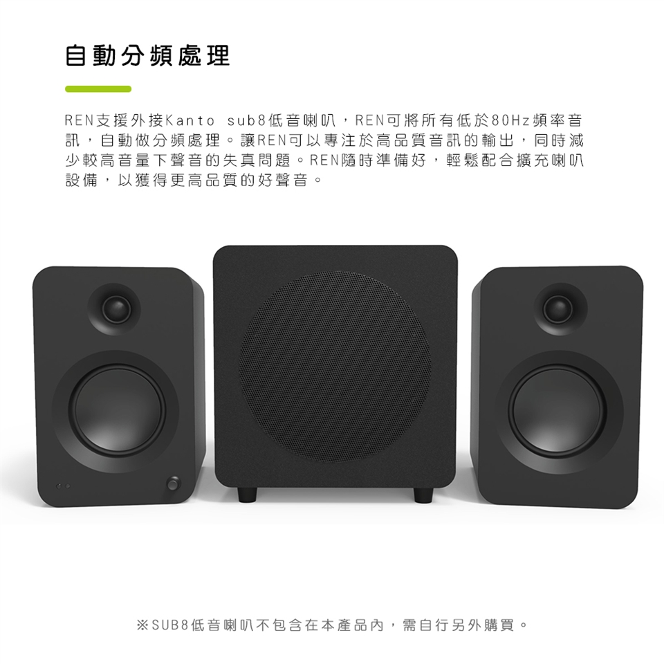 REN支援外接Kanto sub8低音喇叭,REN可將所有低於80Hz頻率音訊,自動做分頻處理。