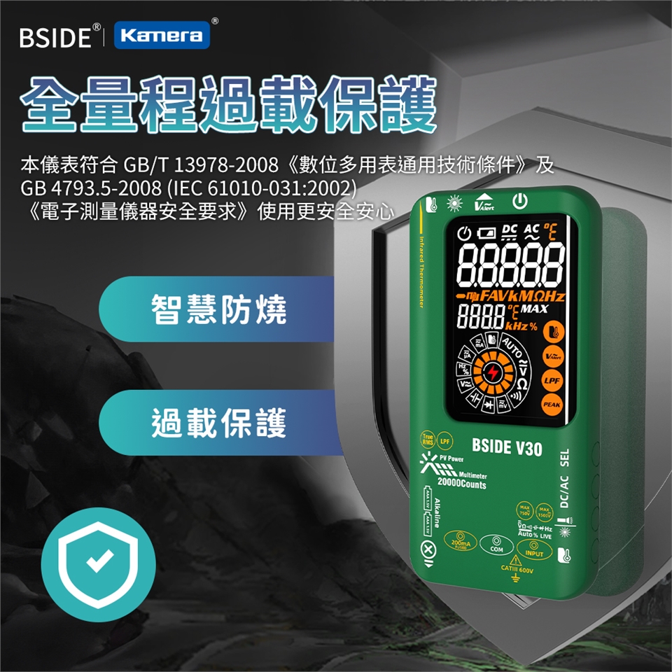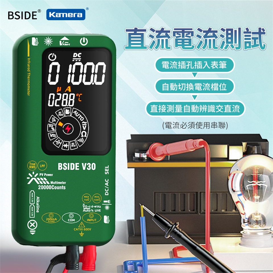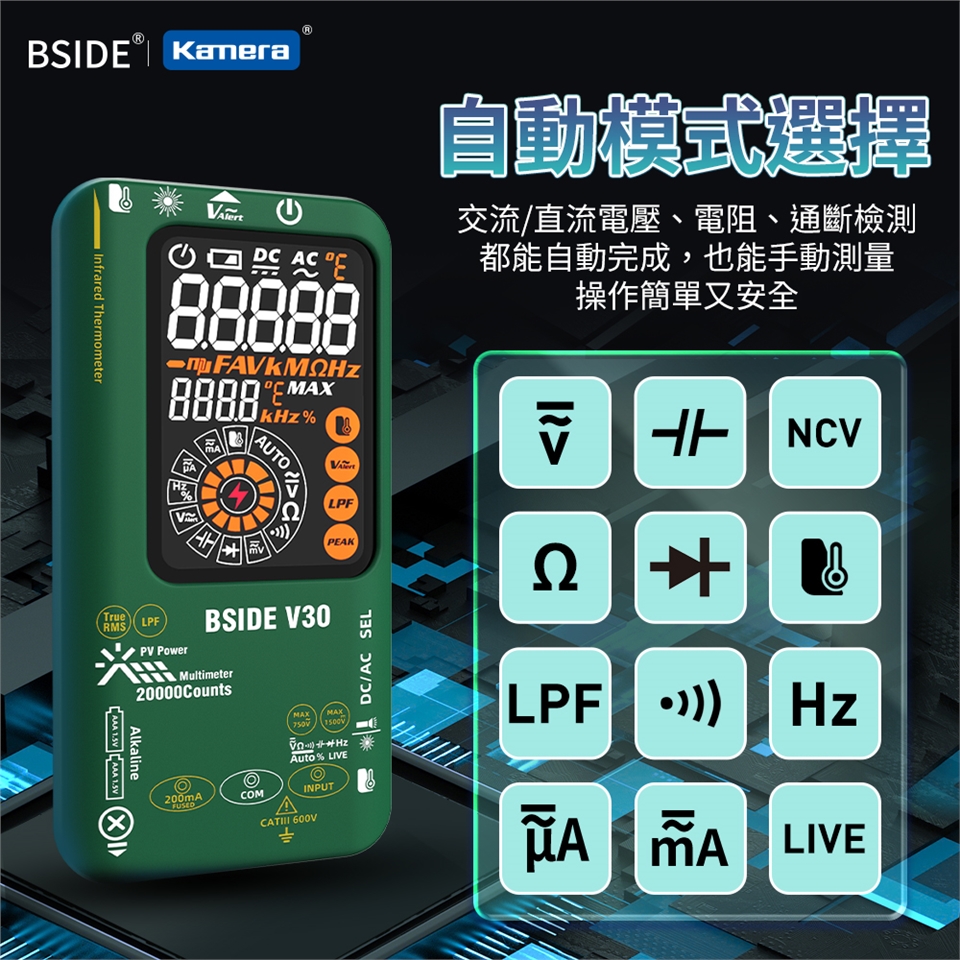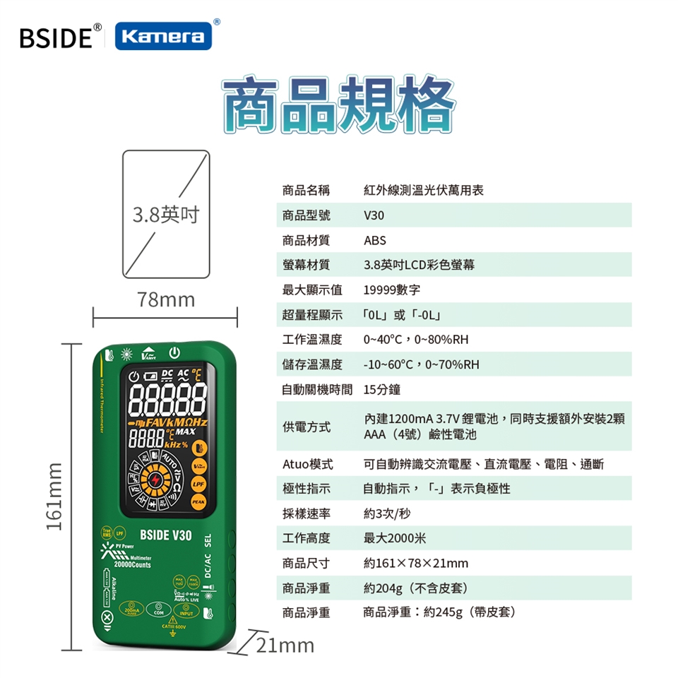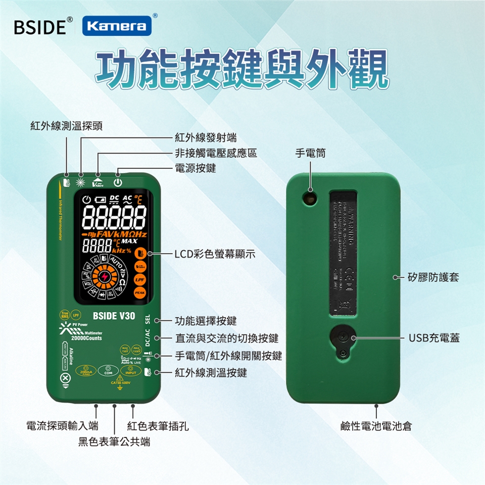 - 雙供電系統:內建雙供電設計,可使用電池或外接電源,測量不中斷,臨時沒電也不怕。