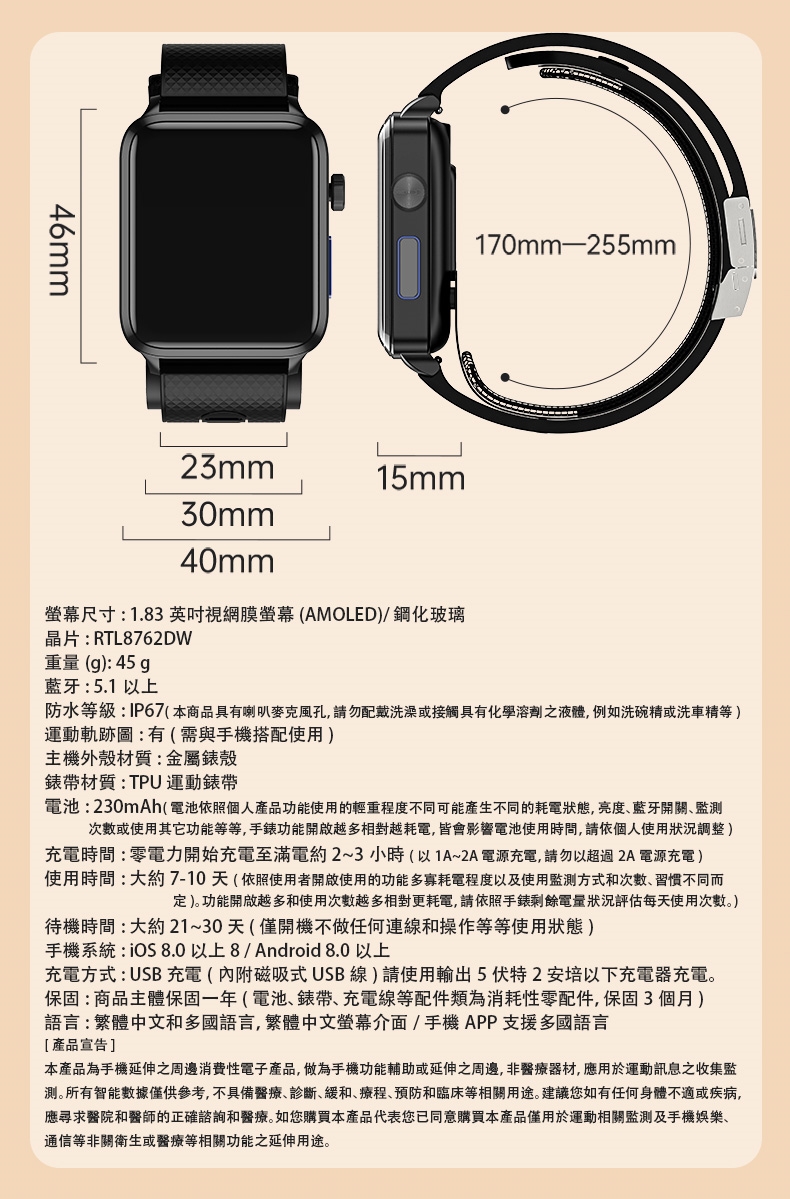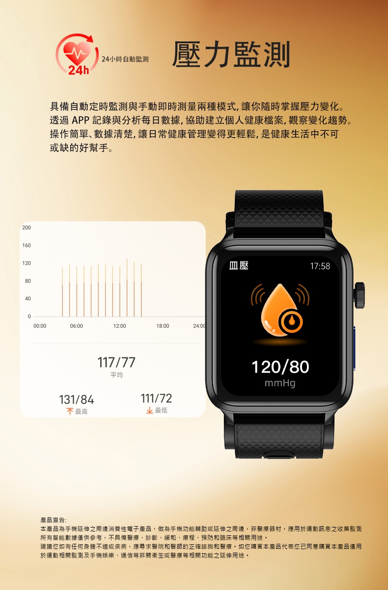 本產品為手機延伸之周邊消費性電子產品,做為手機功能輔助或延伸之周邊,非醫療器材,應用於運動訊息之收集監測。所有智能數據僅供參考,不具備醫療、診斷、緩和、療程、預防和臨床等相關用途。
