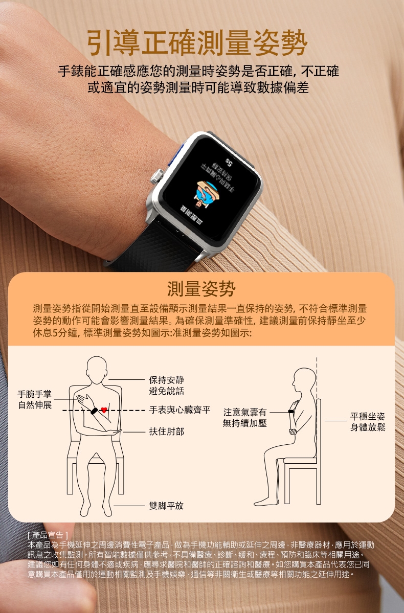建議您如有任何身體不適或疾病,應尋求醫院和醫師的正確諮詢和醫療。如您購買本產品代表您已同意購買本產品僅用於運動相關監測及手機娛樂、通信等非關衛生或醫療等相關功能之延伸用途。