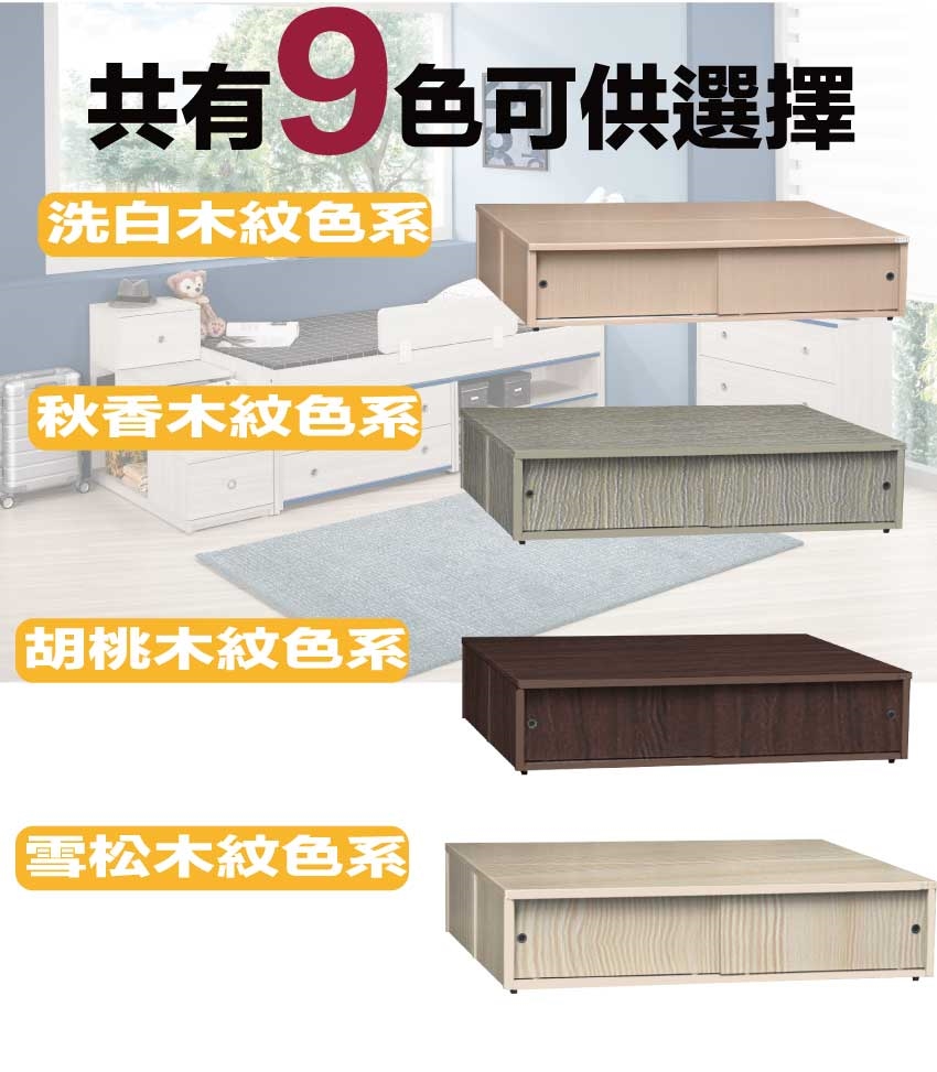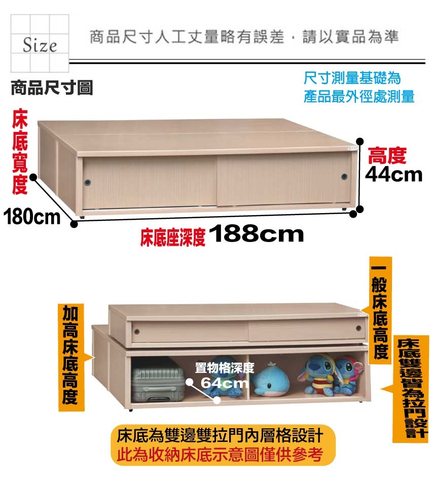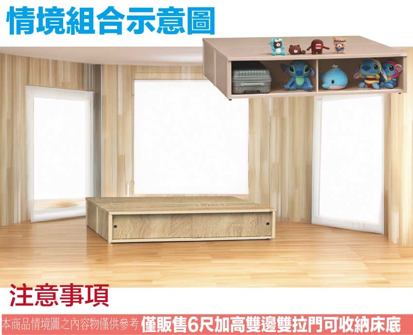搭配床底採用雙邊拉合四拉門+內部收納層格等便利設計