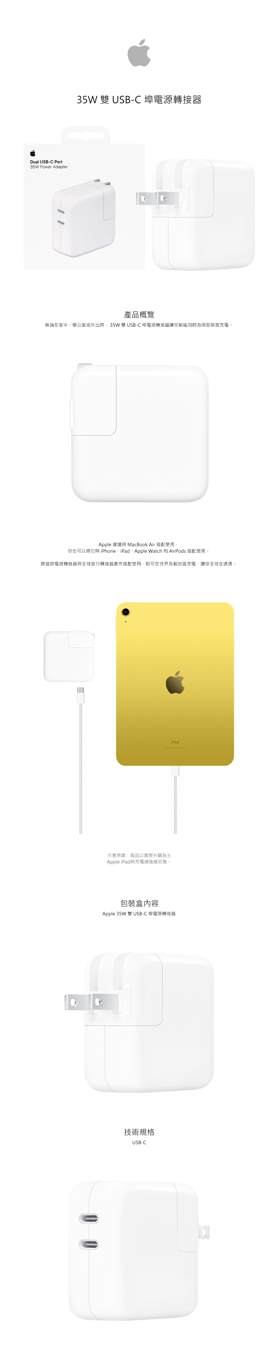 介面:雙埠 USB-C *2 (可同時為兩部裝置供電,適合配件 + 筆電、或手機 + 平板搭配使用。)