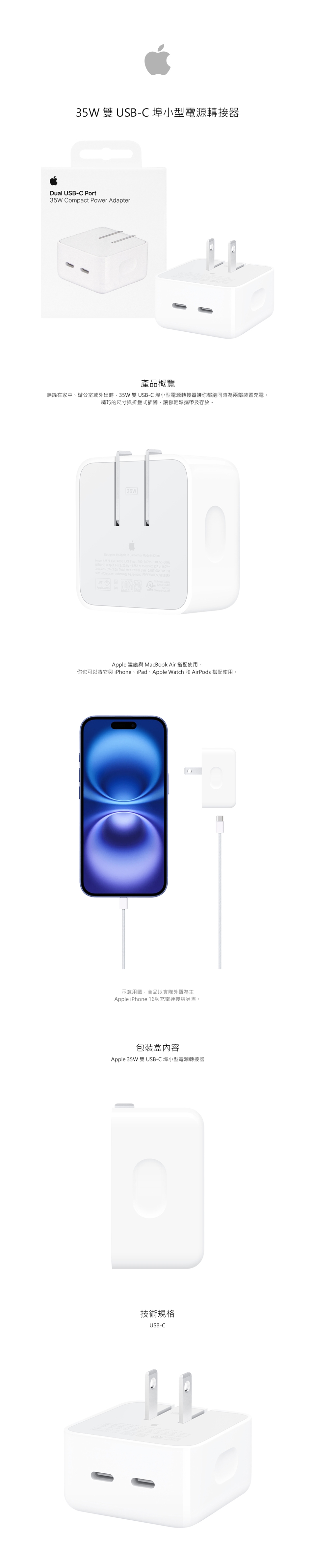 品名:35W 雙 USB-C 埠小型電源轉接器