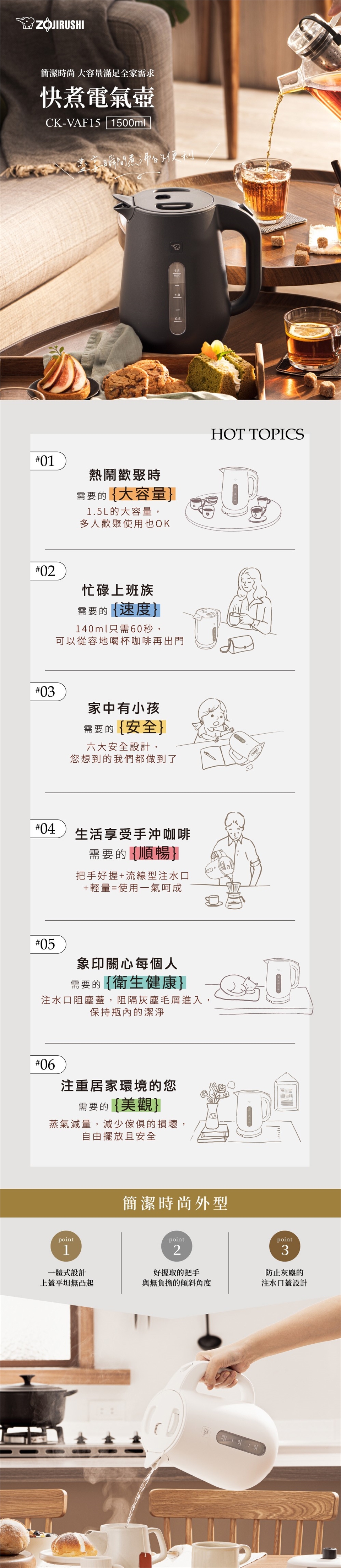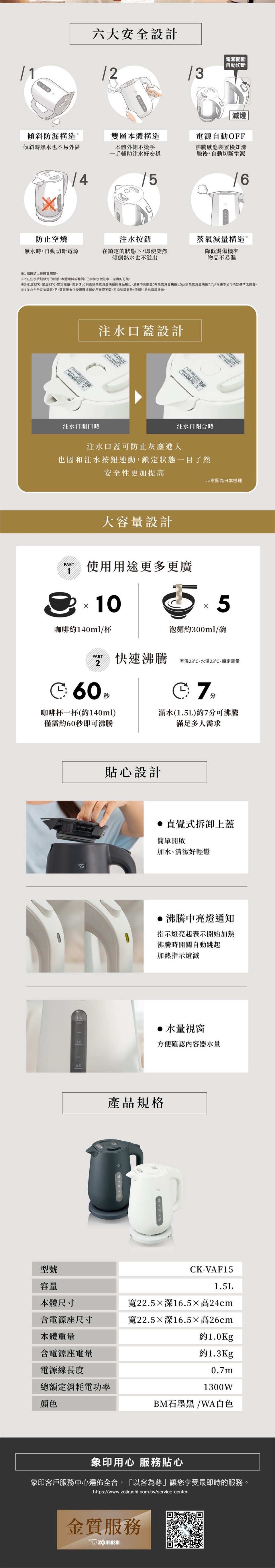 象印 大容量微電腦快煮電氣壺1.5L(CK-VAF15)