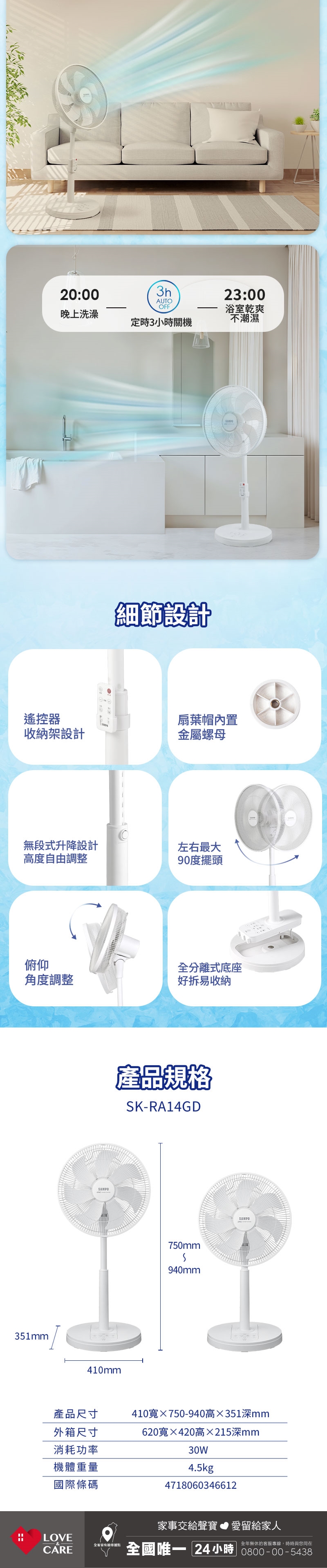 ◆高效能DC節能直流馬達,靜音、低耗電量。