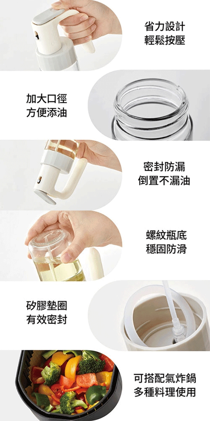 ★ 省力設計輕鬆按壓,加大口徑方便添油