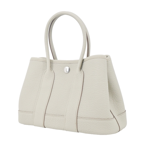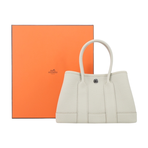 Hermes 愛馬仕 Mini Garden Party 水牛皮手提包(冰川白/W刻/銀釦)