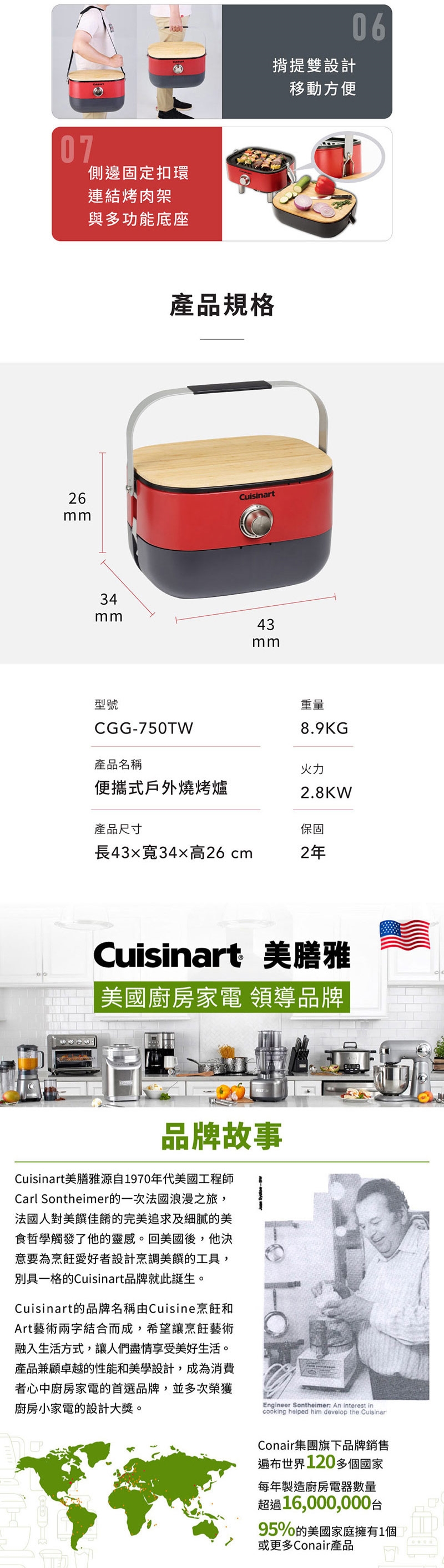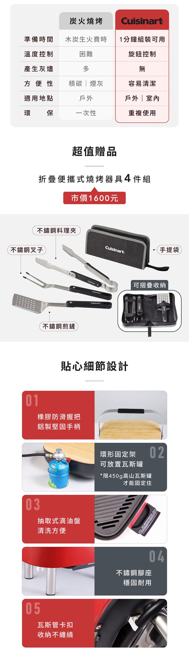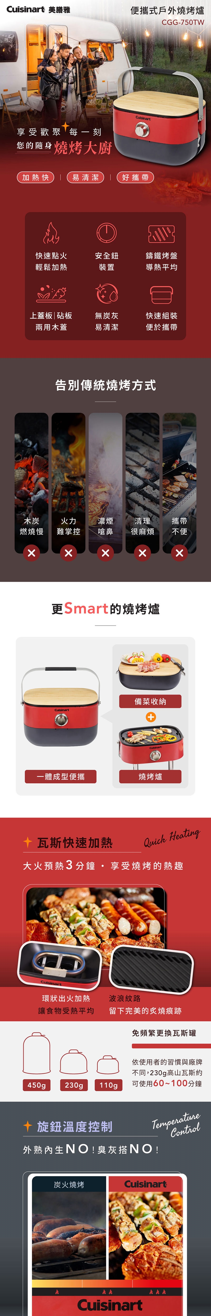 美國Cuisinart美膳雅 便攜式戶外燒烤爐 CGG-750TW