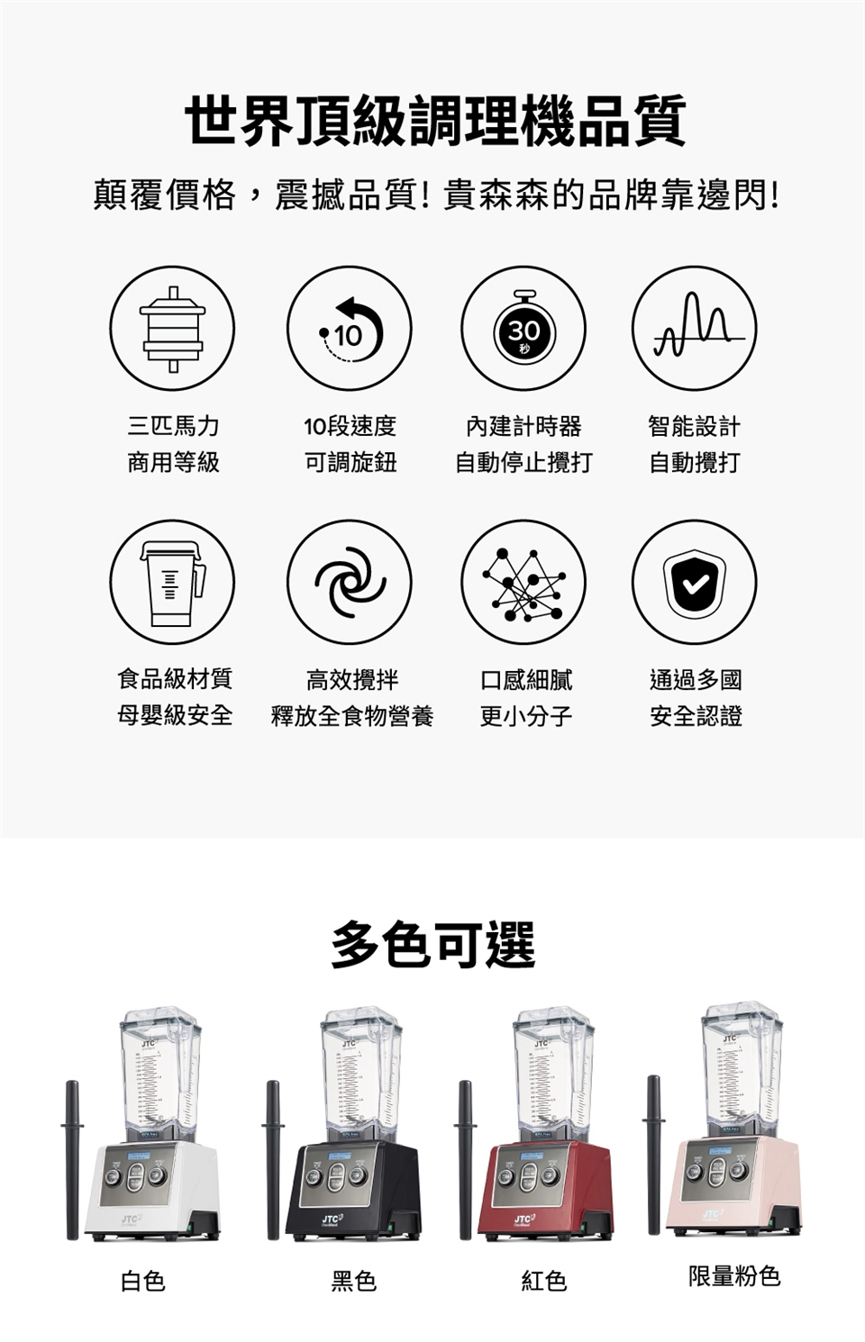 JTC杰帝士三匹馬力智用調理機-旗艦900D-粉色限量款