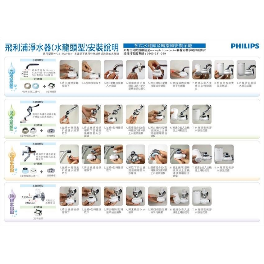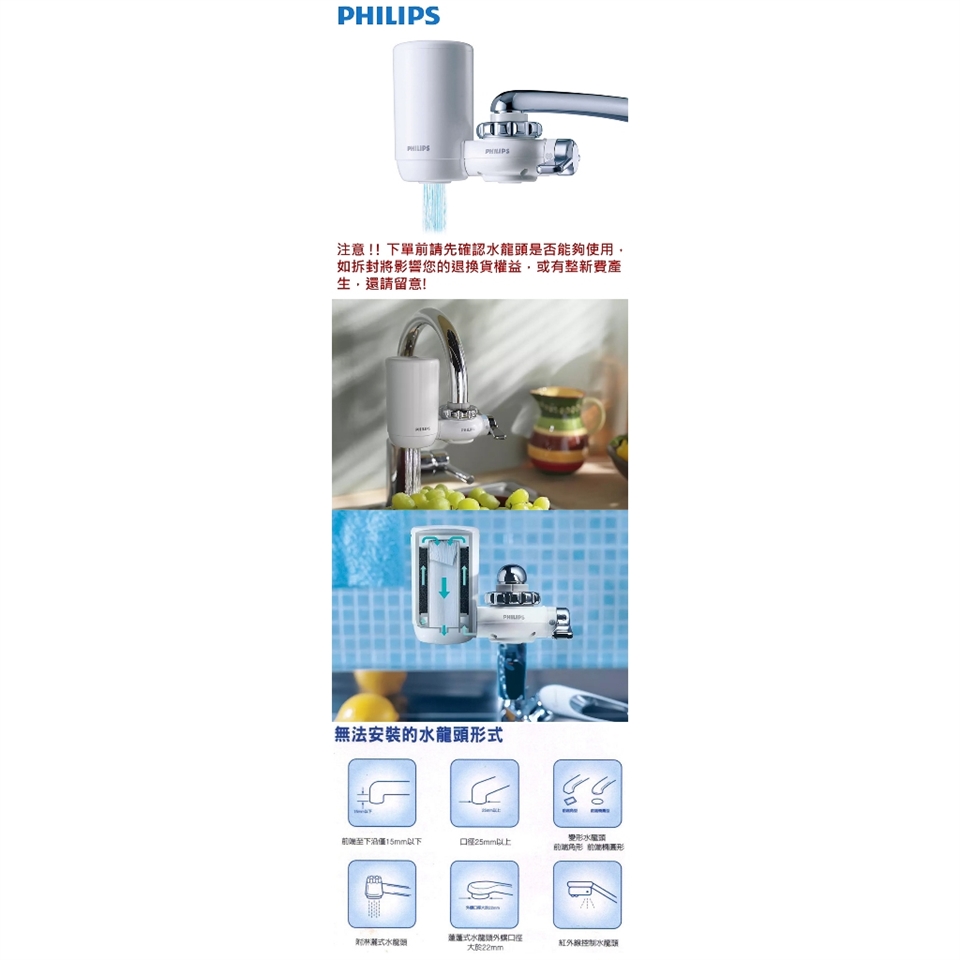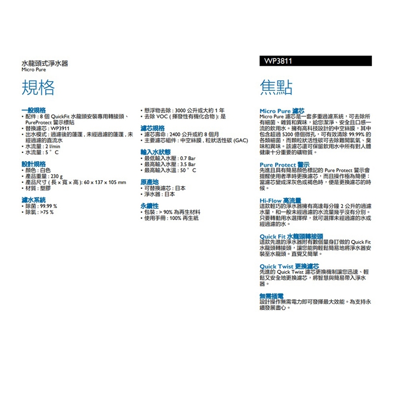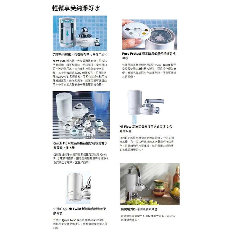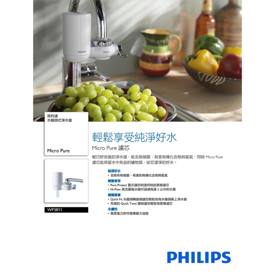 唯一官方專售 主機+濾芯皆日本製【PHILIPS飛利浦】4重超濾水龍頭濾水器 WP3811 水淨水器過濾器 WP3911