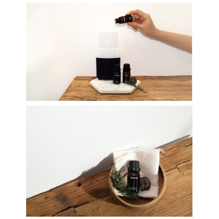 芳香噴霧:將10ml酒精和25ml純水混合3滴精油用室內芳香噴霧劑