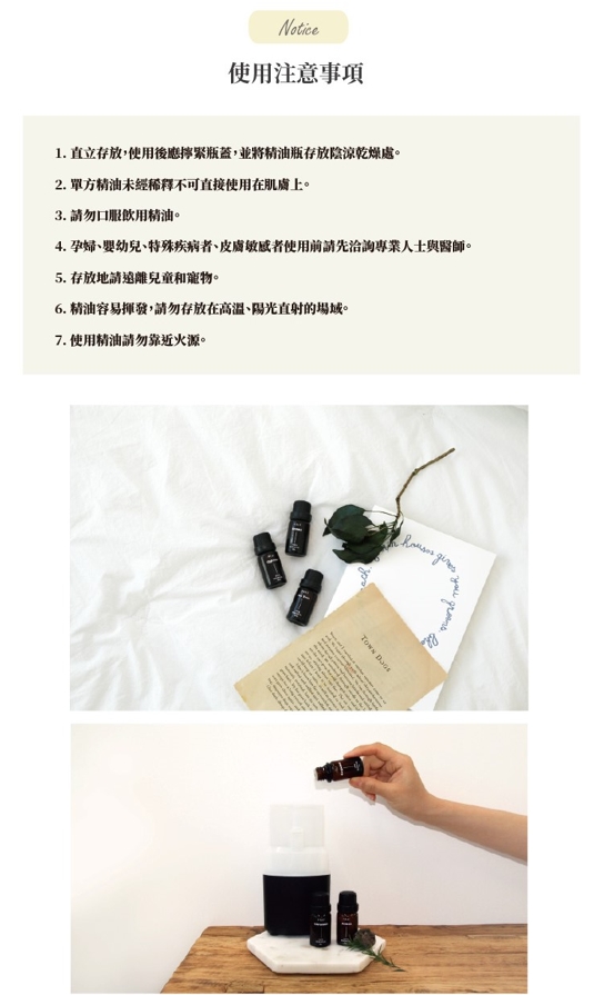 ①單方精油未經稀釋不可直接使用在肌膚上。