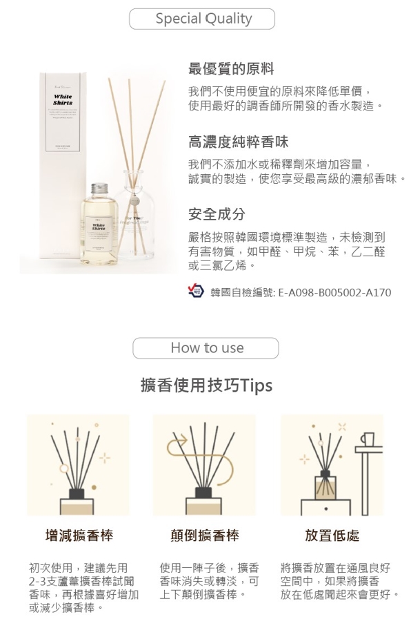 6. 根據使用擴香瓶的環境,香氣的強度可能會有所不同