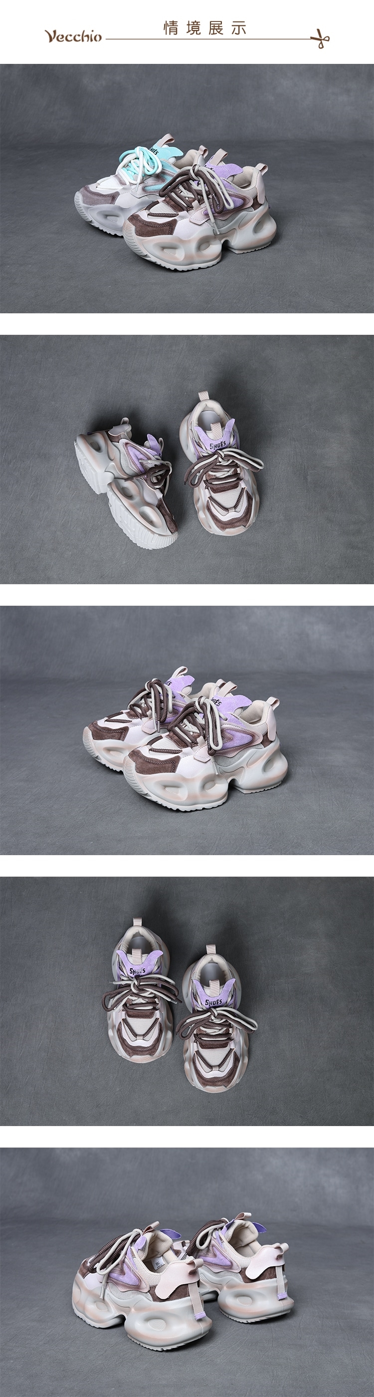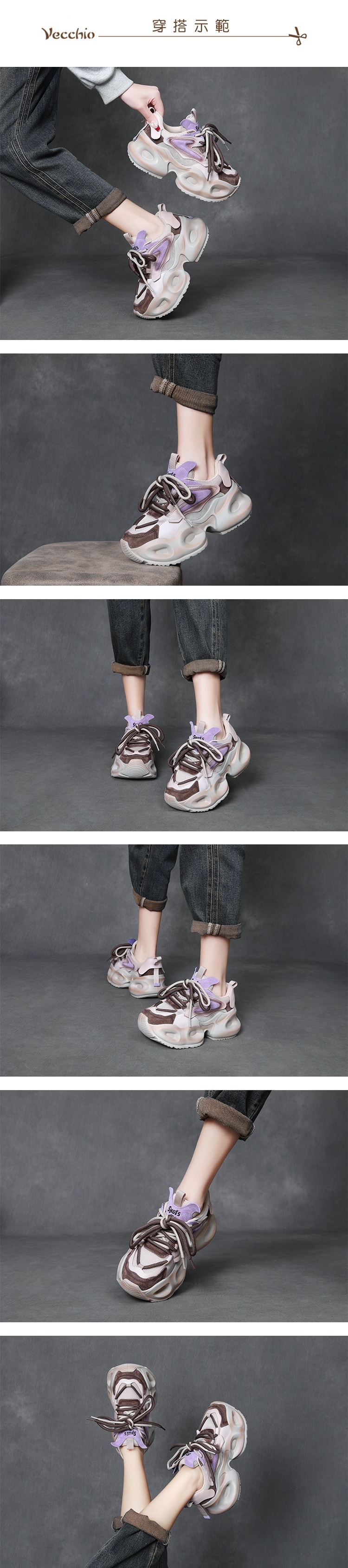【VECCHIO】翻絨牛皮撞色厚底老爹鞋/真皮翻絨牛皮撞色拼接潮流厚底老爹鞋 女鞋 咖