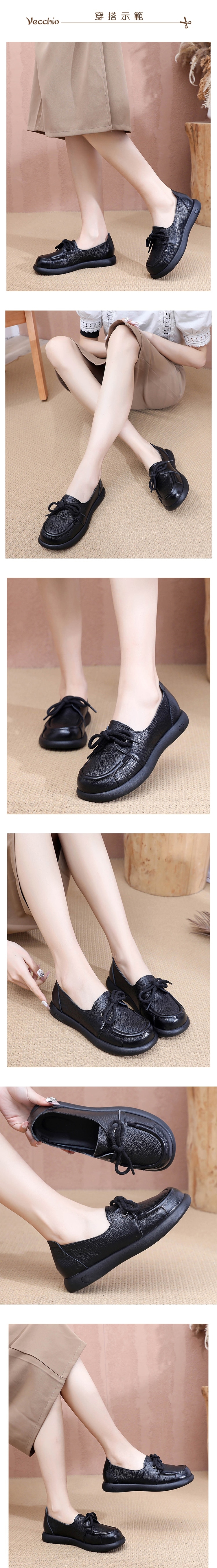 【VECCHIO】真皮花朵縷空平底樂福鞋/真皮頭層牛皮幾何花朵縷空皮帶釦飾平底樂福鞋 女鞋 黑
