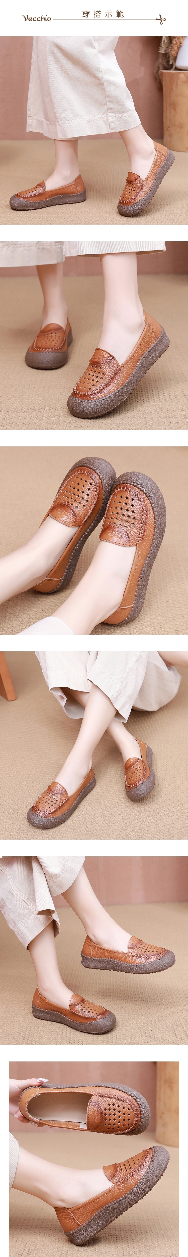 【VECCHIO】真皮菱格縷空厚底樂福鞋/真皮頭層牛皮菱格縷空手工縫線厚底樂福鞋 女鞋 棕