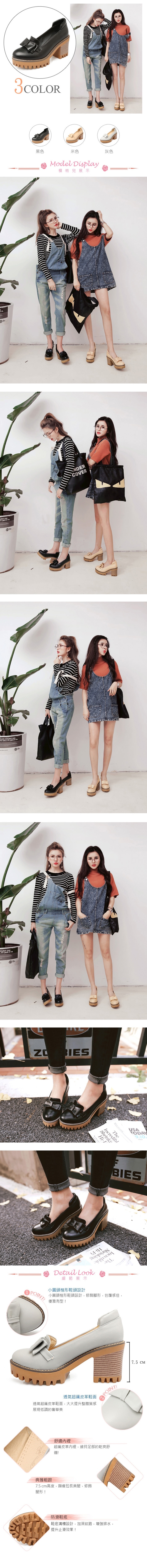 【KISSXXX】高防水台粗跟蝴蝶結淑女鞋/高防水台粗跟小圓頭蝴蝶結淑女鞋 女鞋 黑