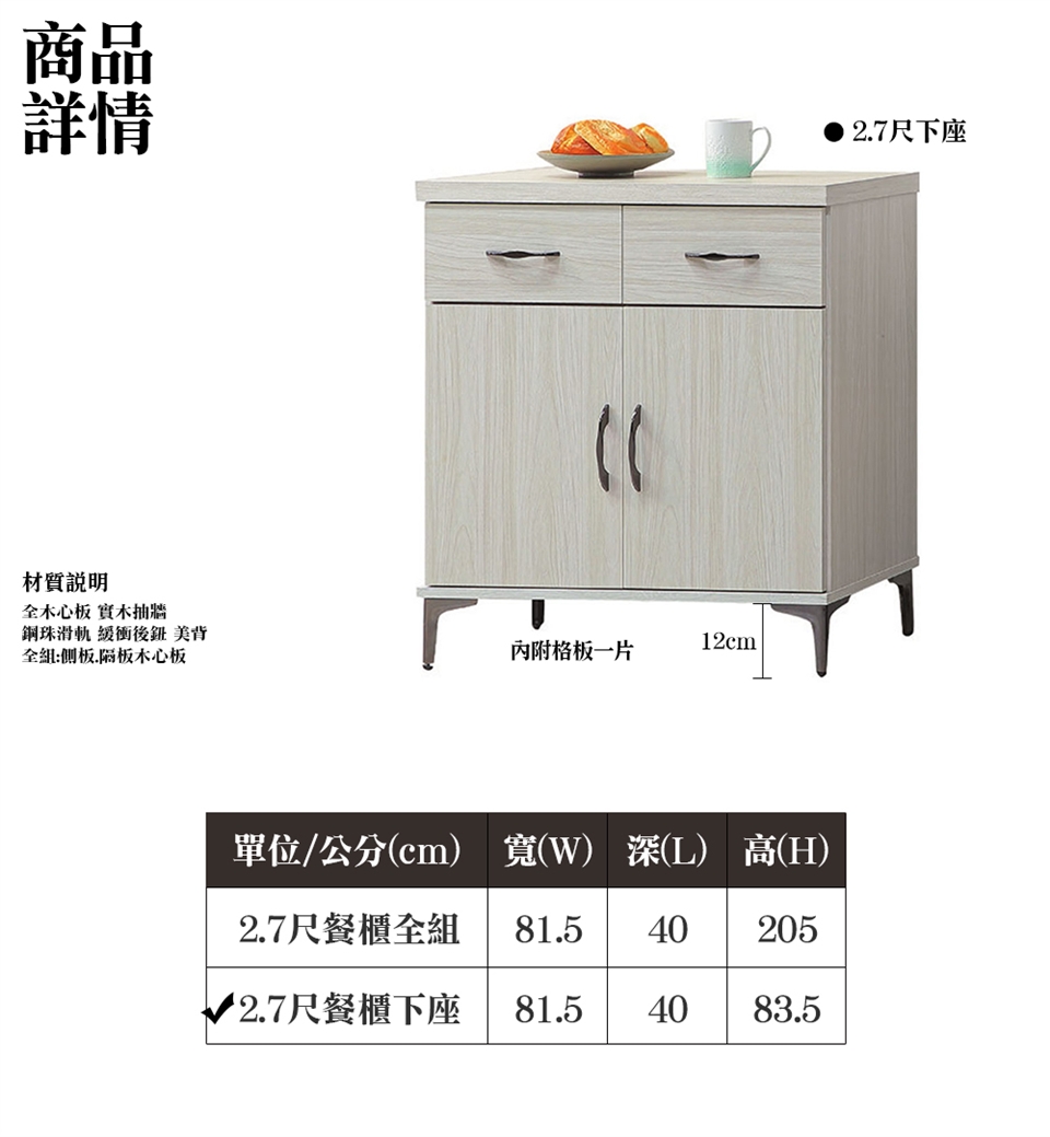 ※此賣場僅販售 馬特利2.7尺餐櫃下座※