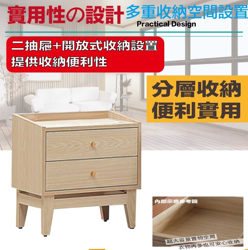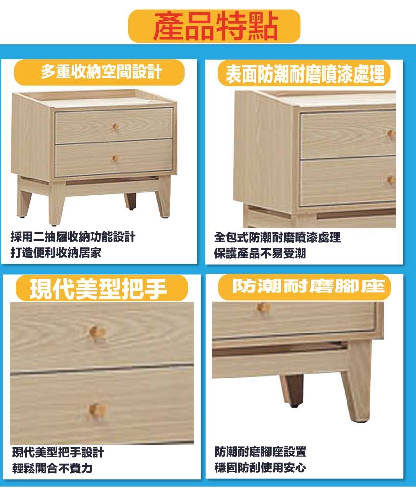 【文創集】萬斯1.6尺二抽床頭櫃 橡木紋色系+安心材質製造,使用放心+搭配居家更便利,採用防蛀木心板+防潮耐磨腳座+五金滑軌結構等安心材質製造 ,外層採用防潮耐磨噴漆處理搭配採用二抽屜+開放式桌面等收納空間設計,全由專人配送到家,專業安心服務,替你省下更多時間!