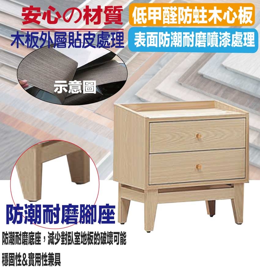 採用防蛀木心板+防潮耐磨腳座+五金滑軌結構等安心材質製造