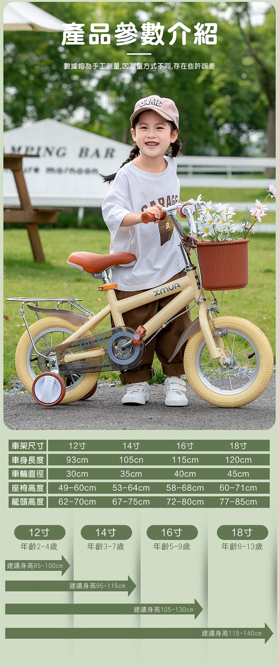 18寸自行車適合身高 115CM 到 140 CM 左右
