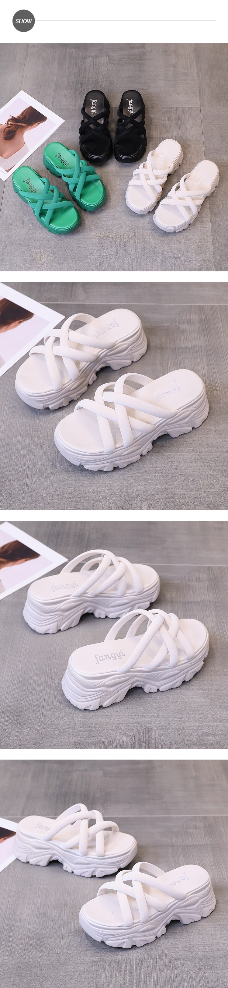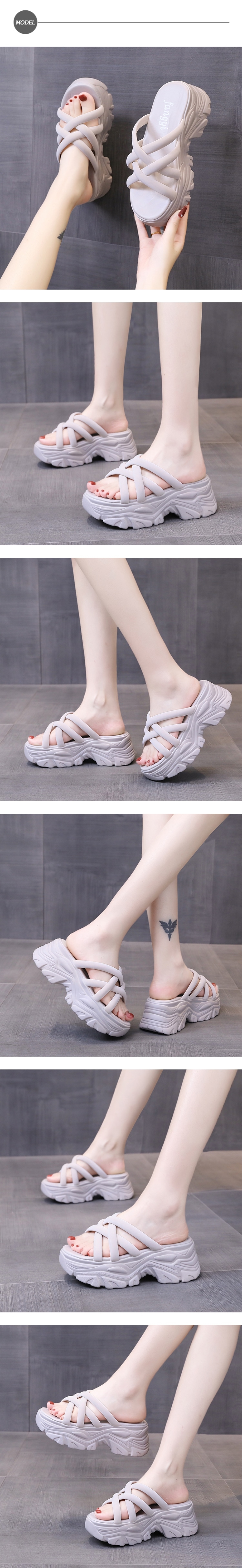 【HMH】交叉織帶厚底拖鞋/個性交叉織帶造型厚底拖鞋 女鞋 米