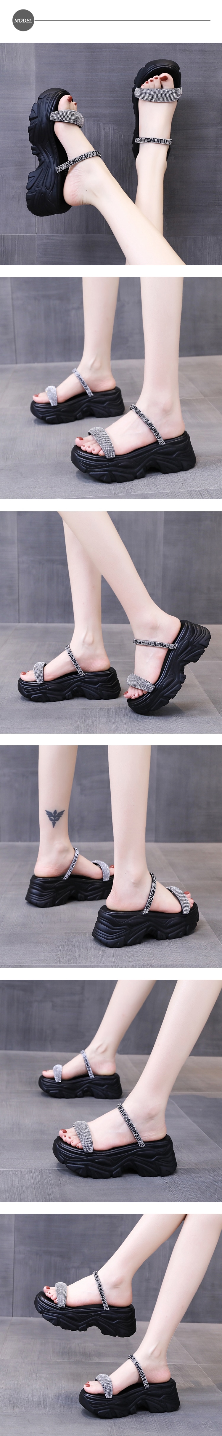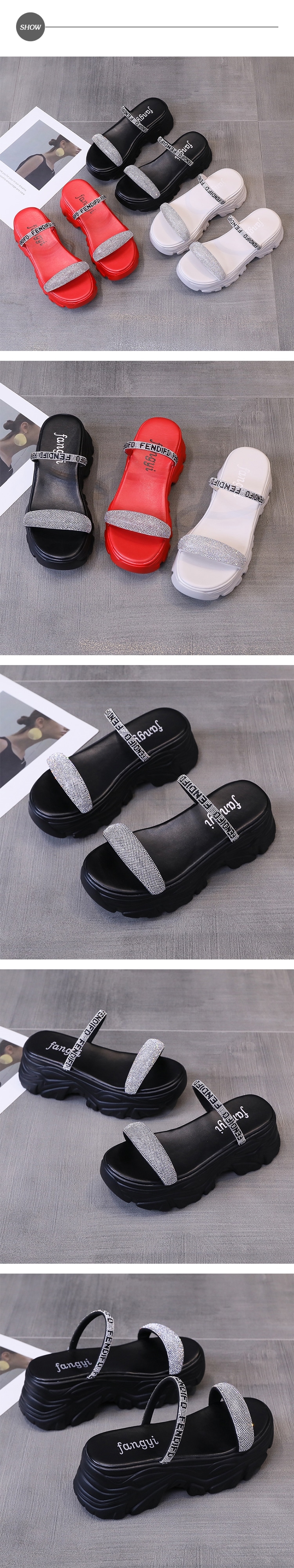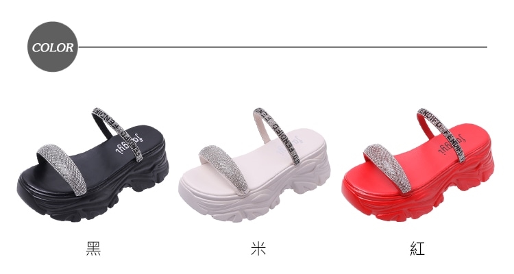 【HMH】美鑽一字帶厚底拖鞋/閃耀美鑽一字帶英文字句造型厚底拖鞋 女鞋 黑