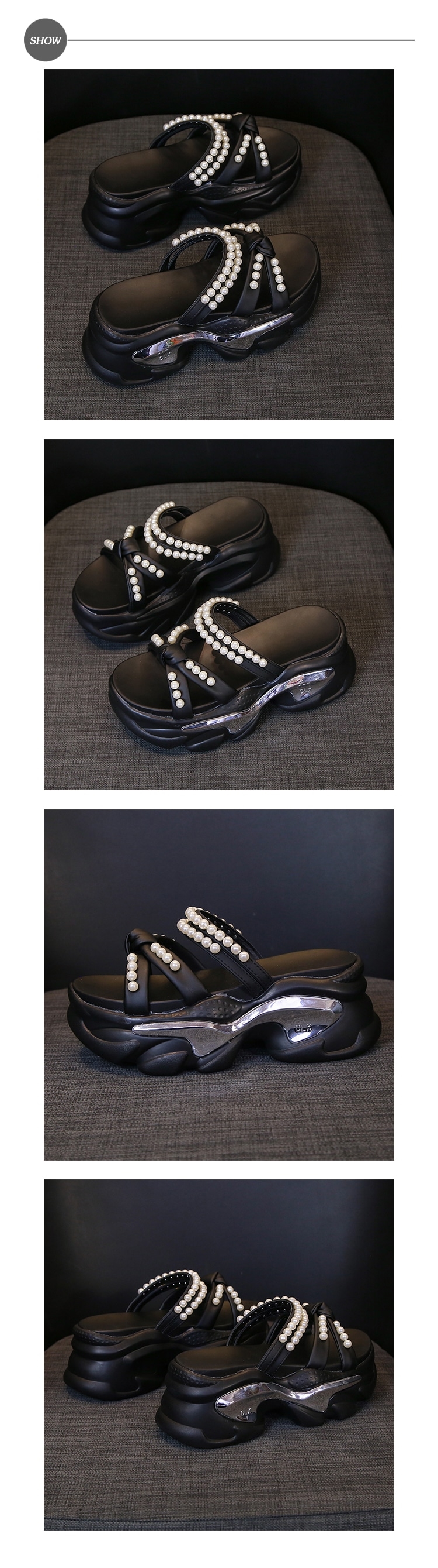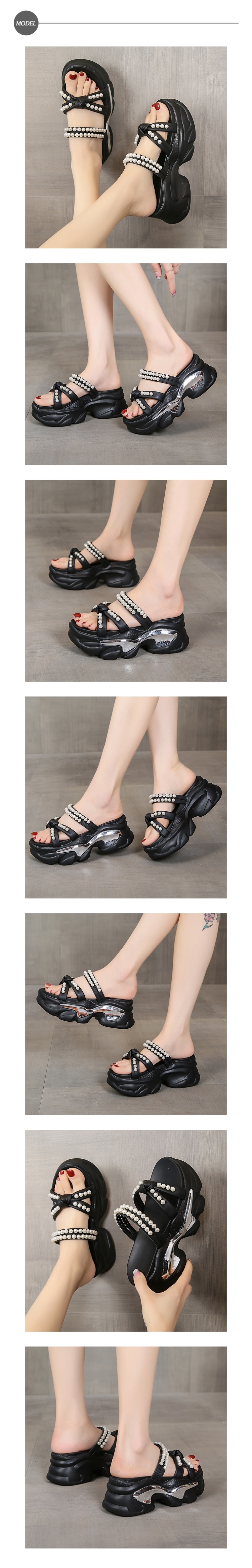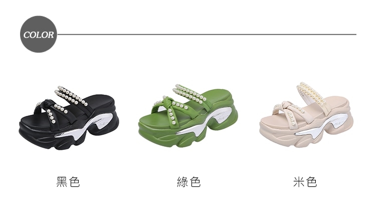 【HMH】蝴蝶結珍珠兩穿厚底涼拖鞋/浪漫蝴蝶結珍珠鍊帶兩穿法設計厚底涼拖鞋 女鞋 黑